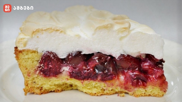 ტორტი „ალუბალი თოვლის ქვეშ“ — კლასიკური დესერტი ნაზი ცომითა და ბეზეს ფენით