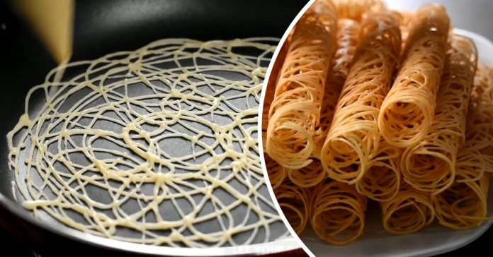 დესერტი ცომიდან “ობობას ქსელი” : ღია მილები ტაფაში