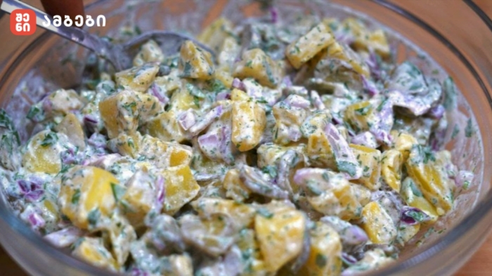 სამი ინგრედიენტით მომზადებული გერმანული კარტოფილის სალათი — მარტივი და უჩვეულო რეცეპტი ყოველდღიური და სადღესასწაულო სუფრისთვის