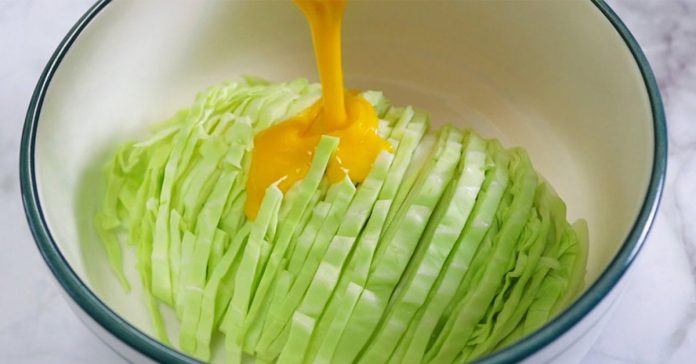 ღრმა თასში ათქვიფეთ ორი კვერცხი. დაასხით კომბოსტოს და ყველაფერი კარგად აურიეთ ჩანგლით. მცენარეული ზეთით გაცხელებულ ტაფაზე შეწვით კომბოსტოს ბლინი, სანამ არ გახდება ოქროსფერი, სახურავის ქვეშ ორივე მხრიდან, რათა კომბოსტო მოიხარშოს. ბლინი რომ არ დაიშალოს, გადააბრუნეთ თეფშით.