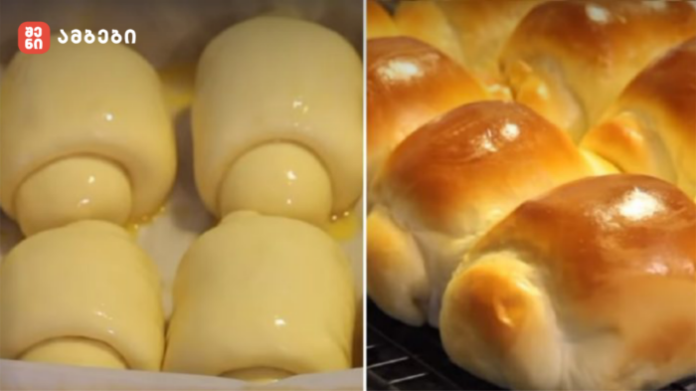 როცა ამოფუვდება, წავუსვათ ათქვეფილი კვერცხის გული, გამოვაცხოთ 190 გრადუსზე 20 წუთით.