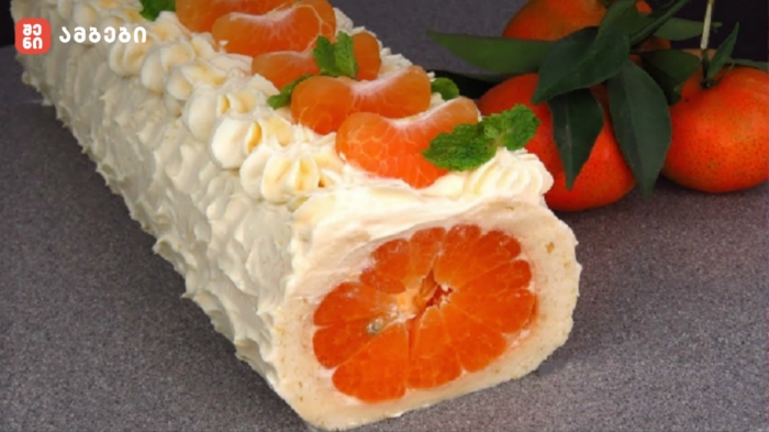 ტკბილი მანდარინის რულეტი ციტრუსის კრემით