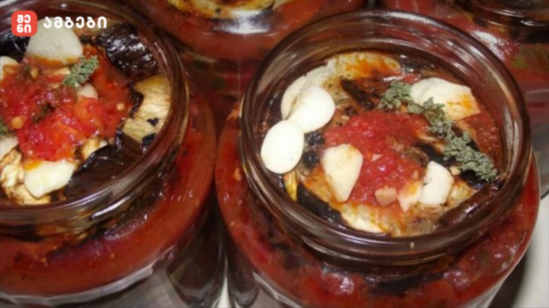 მოათავსეთ სტერილურ ქილებში და მოხუფეთ. 20 წუთით ქილები მოათავსეთ ადუღებულ წყალში.